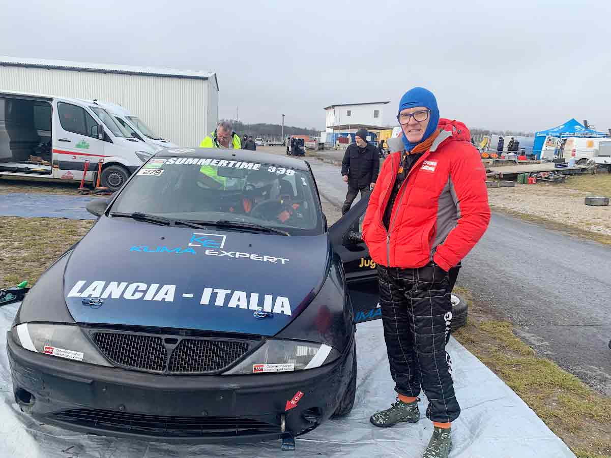 Dani ist als Gastfahrer im oejsv-Team eingesprungen. Gefahren wurde in 2 Klassen (90PS u. 150PS) zusammen. Oejsv startet in der 90PS Klasse. Es waren 3 Fahrer im Team und am Start. Beim Start sah ein Offizieller, dass Benzin aus dem Lancia tropfte und wurde in die Box geschickt. Dort passierte eigentlich nichts, ausser zurueck auf die Strecke und sich als letzter auf Aufholjagd zu begeben. Nach zwei Std. in der Klasse auf Platz 4 und im vorletzten Stint kam das Aus. Ein Schupser von hinten und ein Reifenstapel zertruemmert den Kuehler. Die Ergebnisse gibt es (HIER)